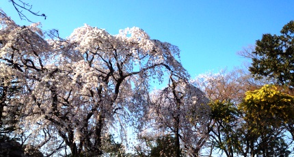 帰り道、「もしかすると中院の枝垂桜が見ごろになっているかも」と途中下車。