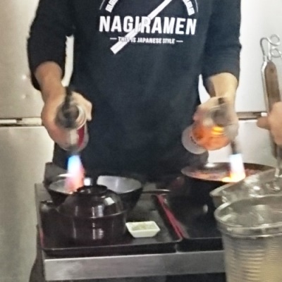 醤油スープをバーナーで炙って、焦げた醤油の香りを楽しむラーメンで、埼玉ではいろいろなお店でやっているメニューです。