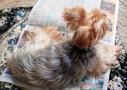 朝食を食べた後でのんびりと新聞を読んでいると、ススッと寄ってきて読んでいる新聞の上にトンが座ってしまいました。