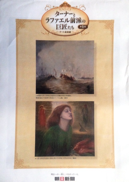 朝日新聞の、毎月2枚複製絵画を無料で宅配するサービス「ターナーとラファエル前派の巨匠たち」の第5回がとどきました。