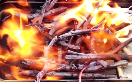 本来は菩提寺に行って火をもらい、提灯のろうそくに移して家に持ち帰るのだそうですが、多くの家庭では住居と菩提寺が離れているので、入り口で火をたいて祖先の霊を迎えるのだそうです。