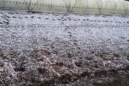 ほとんど融けていますが、裏の畑は土が水分を吸収するので、僅かながら残っています。