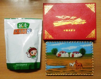 内蒙古から来ている留学生が、夏休み帰省した蒙古からのお土産を持ってきてくれました。