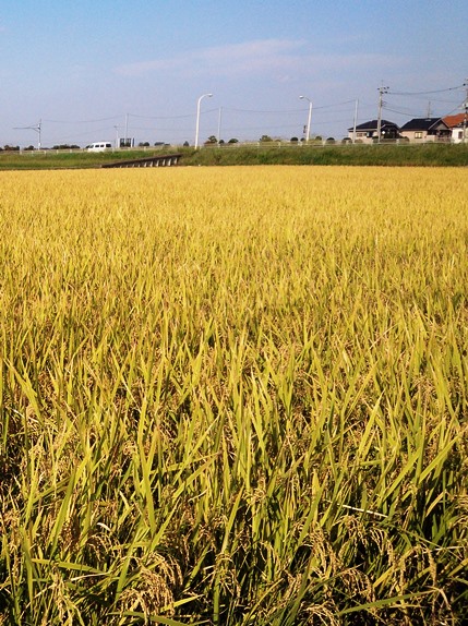 その途中、川越の穀倉地帯を通ると、すでに稲の借り入れが始まっています。
