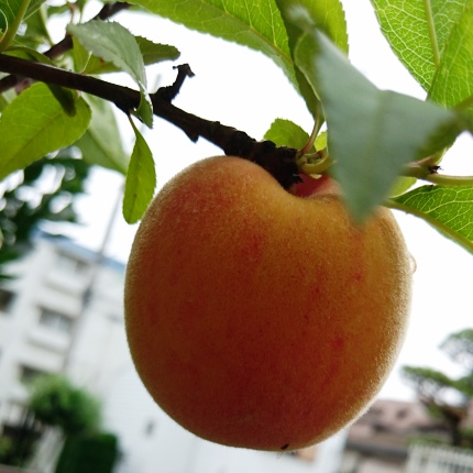 我が家の庭に埋めたモモの種が、成長して実をつけたのが去年の6月。