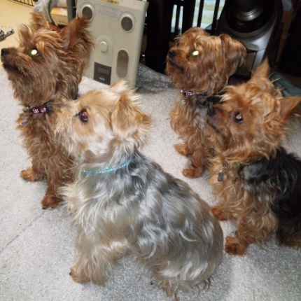 椅子に座ってyossieと食べ始めた途端、何も言わないのにきれいにお座りをして整列。